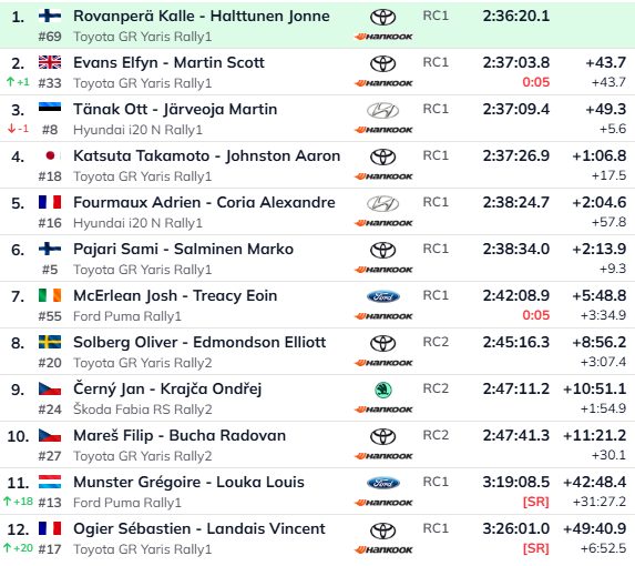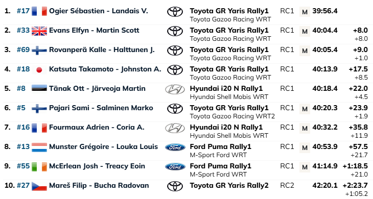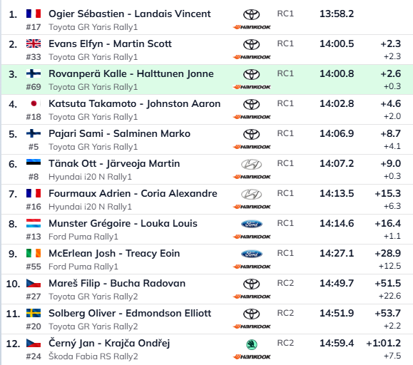 Kesk-Euroopa MM-ralli võitsid Kalle Rovanperä ja Jonne Halttunen. Pühapäevased maksimum punktid võttis Sebastien Ogier.