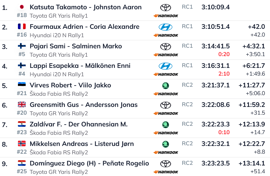 Takamoto Katsuta on Keenia MM-ralli otsustava punktikatse eel hoidmas kindlat liidrikohta. Kuigi pühapäevaste esimeste katsetega kahanes jaapanlase edumaa lähima jälitaja Adrien Fourmaux’ ees 42 sekundile, kontrollib Toyota piloot sündmuste käiku ja väldib liigseid riske. Eesti rallifännide rõõmuks hoiab Robert Virves enne viimast katset WRC2 klassis liidrikohta ja asub absoluutarvestuses viiendal positsioonil.