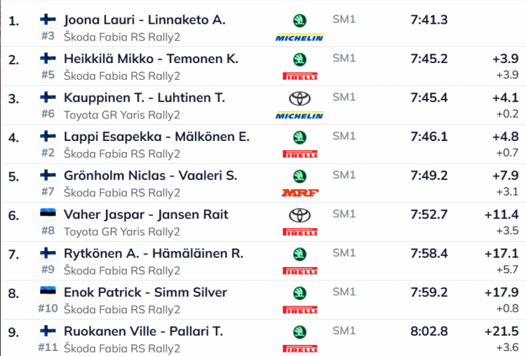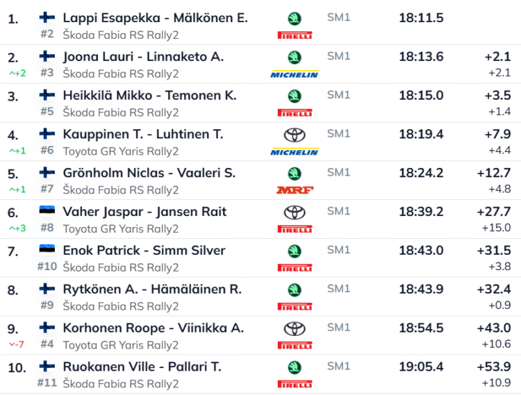 Klassi liidrina jätkab Esapekka Lappi, kelle edu teiseks tõusnud Lauri Joona ees on vaid 2,1 sekundit.