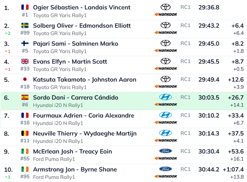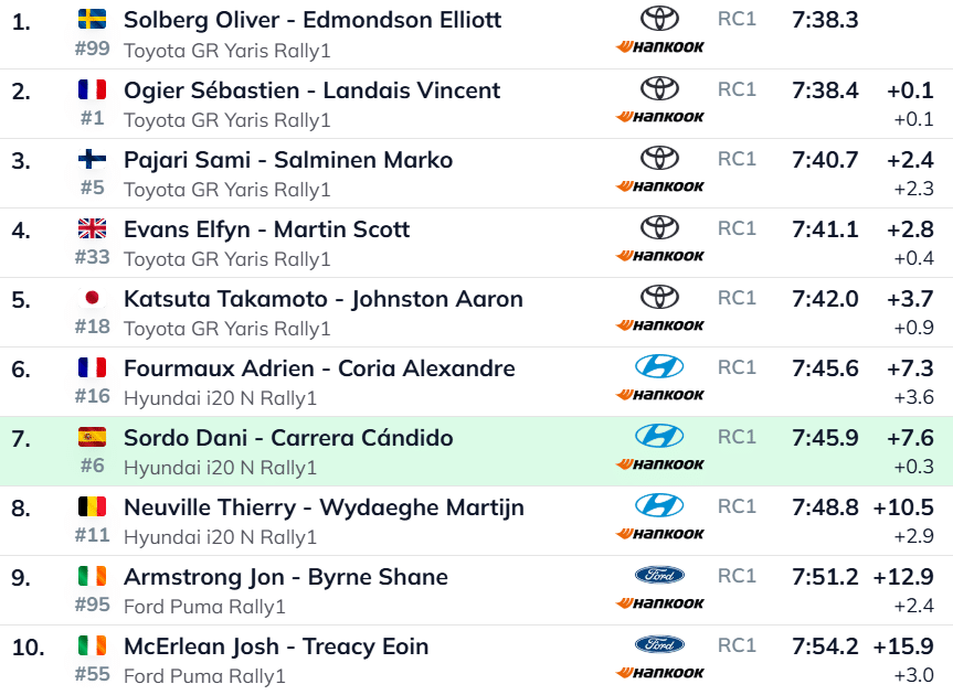 Rootslane edestas ralli liidrit Sebastien Ogier’d kõige napima, vaid 0,1-sekundilise eduga. Prantslase edu üldarvestuses on nüüd teiseks kerkinud Solbergi ees 6,4 sekundit. “Okei katse. Kõik teavad seda katset, siin oli oodata väikseid vahesid,” võttis ralli liider Ogier kordusläbimise rahulikult kokku.