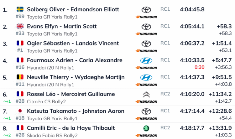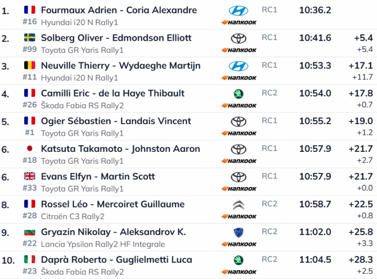 Rally1 autodest oli kiireim Adrien Fourmaux (Hyundai), kes jäi oma esitusega rahule. Prantslane nentis, et ekstreemsete olude tõttu on konkurents segunenud ka madalamate klasside autodega.