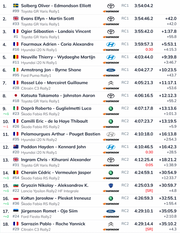 Suurepärast pühapäeva jätkab ka Romet Jürgenson, kes sõitis välja kolmanda aja. Jürgenson kaotas Evansile +4.8 sekundiga. See tähendab, et teist katset järjest suutis Jürgenson seljatada pea kõik maailma tippmehed Rally1 autodes.