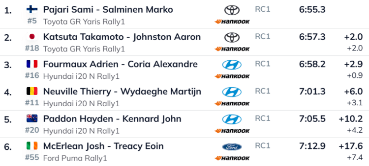 Teise aja sõitnud Takamoto Katsuta (+2,0) nentis, et pärastlõunased kordusläbimised saavad olema keerulised. “Üritasin küll kurvidesse mustust jätta, et taganttulevates meestes ebakindlust tekitada, aga seda ei kogunenud sinna väga palju. Seni on juhtunud juba päris palju ja ees ootab keeruline pärastlõuna,” sõnas jaapanlane.