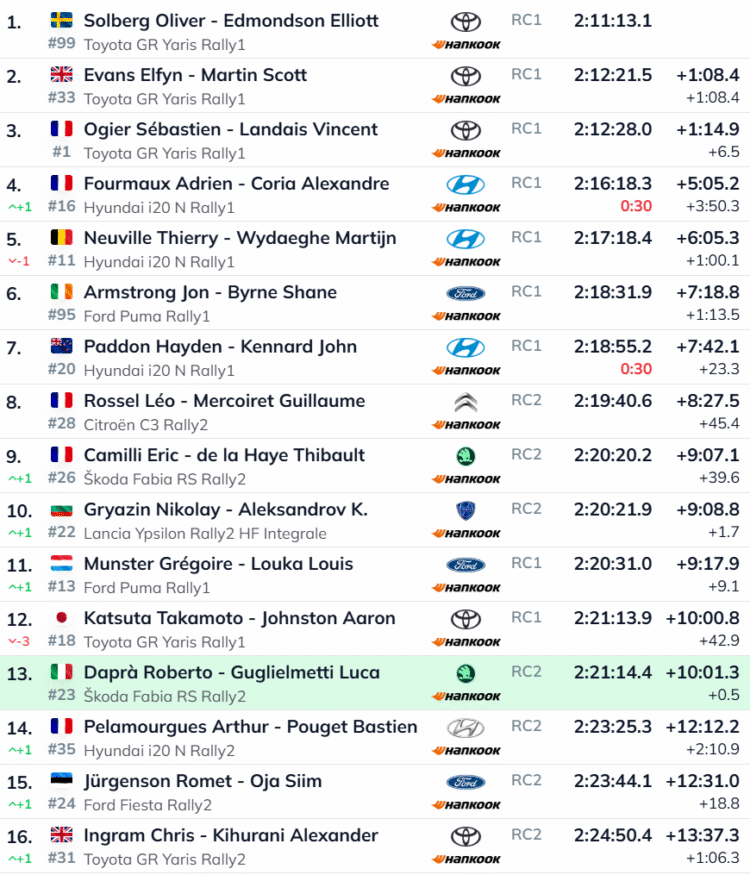 „Jäin kurvi lõigates lihtsalt kinni ja sealt polnud enam pääsu. Kui oled kahe rattaga kraavis, siis ei saa sealt enam kuidagi välja. Õnneks olid fännid abiks, kes meid uuesti rajale aitasid. Täna oli paras katsumus, aga oleme vähemalt lõpus,“ võttis Neuville olukorra kokku. Kaotust katsevõitjale kogunes tal lõpuks 3.43,1.