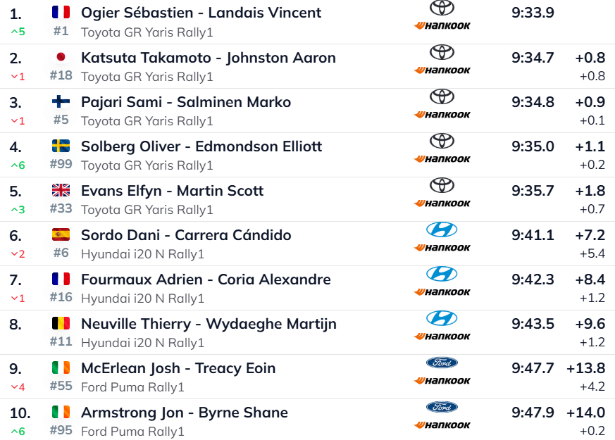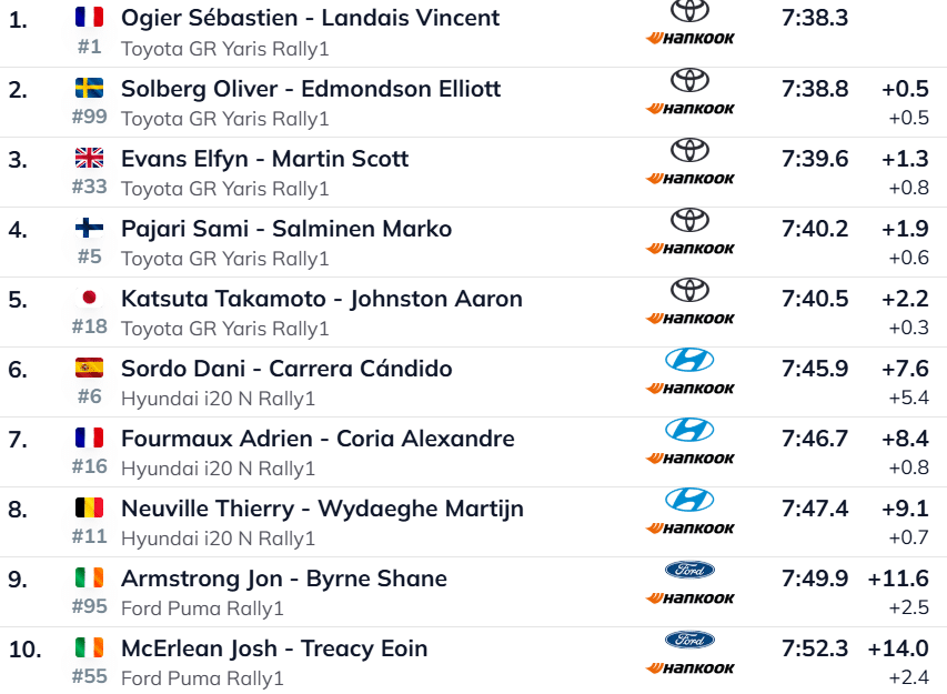 Esimesena rajal olnud Takamoto Katsuta kaotas meeskonnakaaslasele 2,2 sekundit ning langes üldarvestuses teiseks. “Ei midagi erilist, mõnes kohas oli lihtsalt tolmune,” kommenteeris jaapanlane katse järel.