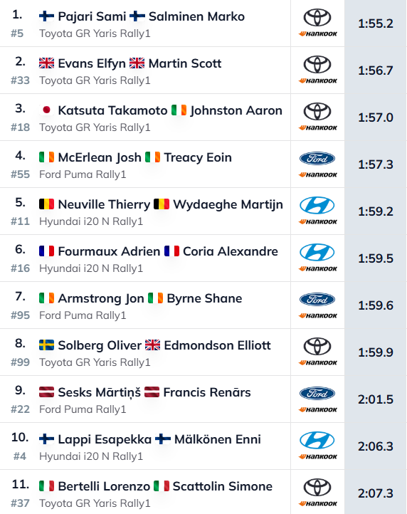 Rootsi MM-ralli testikatse esimesel läbimisel näitas kõige kiiremat minekut Sami Pajari, kes edestas teise aja kirja saanud eelmise aasta võitjat, Elfyn Evansit 1,5 sekunidga.