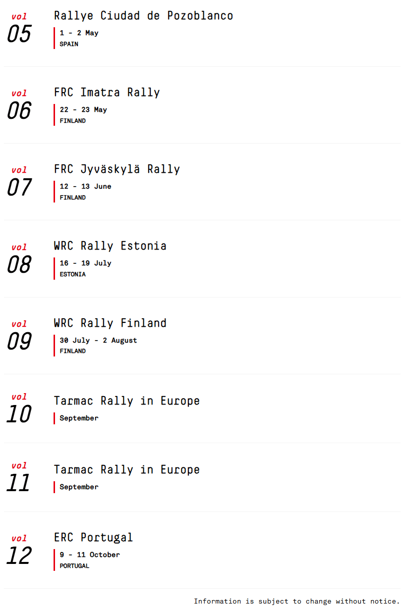 Enne suviseid tippvõistlusi ootab noort sõitjat tihe graafik Euroopa kruusateedel. Juba mai esimesel nädalavahetusel stardib ta Lõuna-Hispaanias Cordoba lähistel toimuval Pozoblanco rallil, mis on sealse meistrivõistluste sarja teine etapp.
