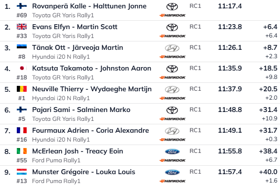 „Meie olukorda arvestades oli katse okei, aga sooritusvõimest jääb puudu. Lehtede peal oli keeruline, mujal olid olud head,” ütles Tänak katse lõpus.