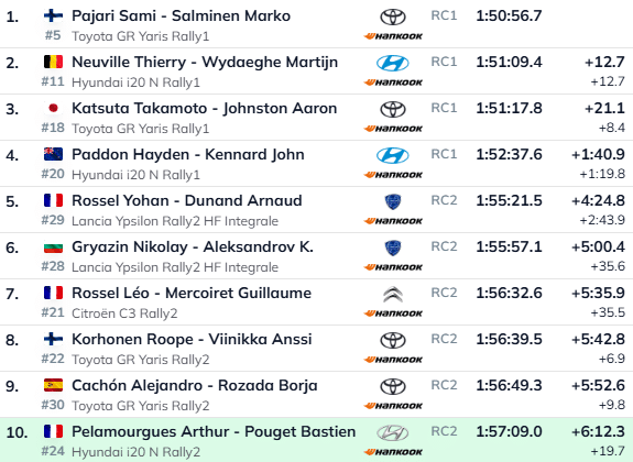 Ralli üldliider Sami Pajari andis tiimikaaslasele ära täpselt neli sekundit. Soomlase jaoks oli pärastlõunase ringi avakatsel aga esmatähtis riskide vältimine ja auto säästmine, et turvaliselt liidrikohta hoida. “Rajal oli näha mõningaid rehvipurunemisi, seega proovisin olla ettevaatlik,” selgitas Pajari, miks ta seekord päris piiril ei surunud.