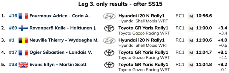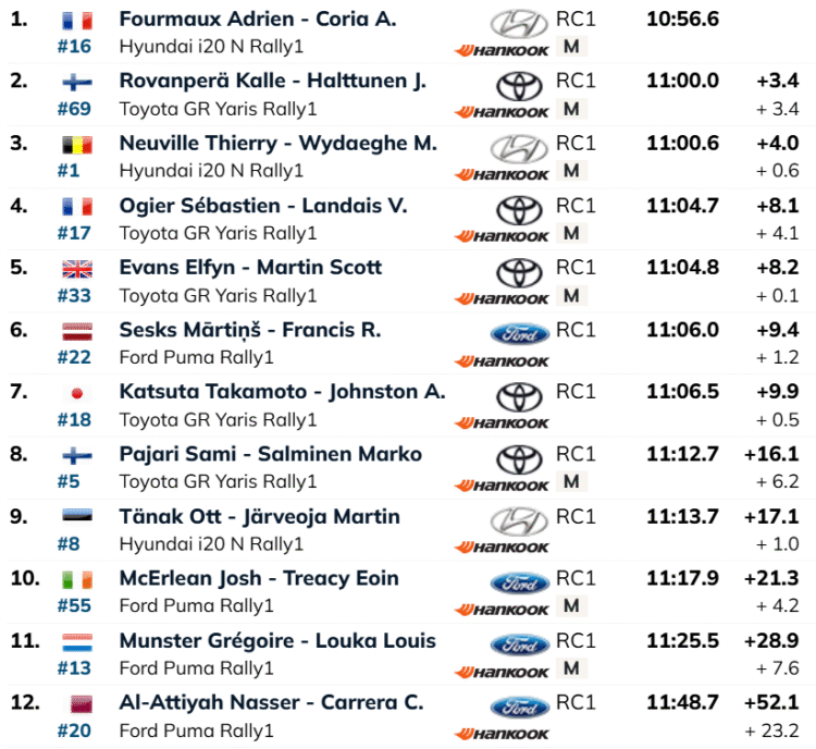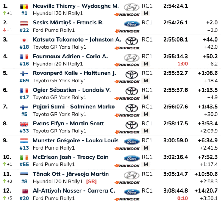 Päeva liidrina alustanud Martins Sesks andis aga kõvasti aega ära. Lätlane kaotas katse võitjale lausa 9,4 sekundit ning langes üldarvestuses Neuville’i seljataha, kaotades talle nüüd kahe sekundiga.