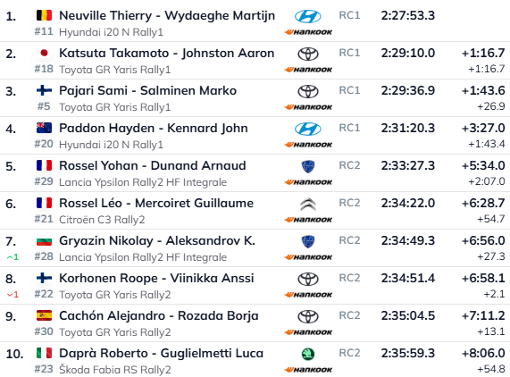Üldarvestuses juhib Neuville teisel kohal oleva Katsuta ees jätkuvalt enam kui minutiga, Pajari kaotab jaapanlasele omakorda ligi pool minutit. Horvaatia MM-rallil on jäänud sõita veel kolm kiiruskatset.