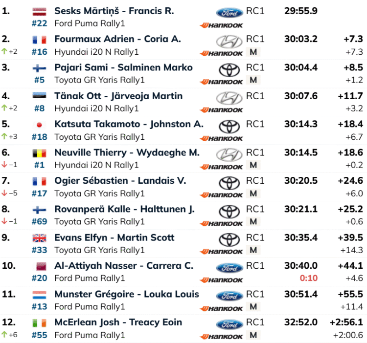 Sellest hoolimata näitasid Ott Tänak ja Martin Järveoja suurepärast kiirust – eestlastest olid kiiremad vaid oluliselt soodsama stardikohaga Adrien Fourmaux ja ralli liider Martins Sesks.