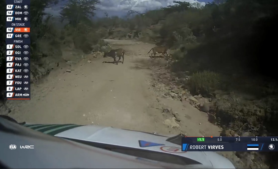 WRC2 arvestuses klassi liidrina jätkav Robert Virves pääses sellel katsel ehmatusega, kui pimeda kurvi järel ilmusid teele loomad. “Ma arvan, et siin ei suuda miski pinget maha võtta. Meil olid üsna halvas kohas pärast pimedat kurvi teel mõned loomad. Õnneks suutsime neist mööda põigata,” kirjeldas eestlane.