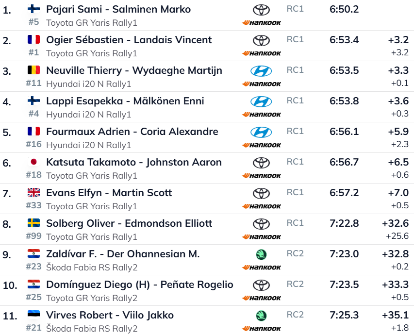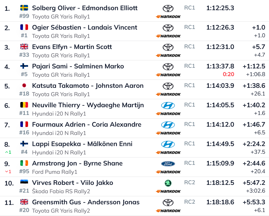 Solbergi Toyota parem tagumine rehv hakkas tühjenema kuus kilomeetrit enne finišit ning tuli viimasel sirgel täielikult maha. Rootslane kaotas katsel teise aja sõitnud Sebastien Ogier‘le 29,4 sekundit, mis jätab tema üldedu prantslase ees nüüd täpselt ühele sekundile. “Ma ei tea, tundsin midagi, aga ei näinud midagi. Tegu oli lihtsalt aeglase rehvipurunemisega. Arvan, et pean nüüd oma kiirust veidi tõstma,” nentis Solberg.