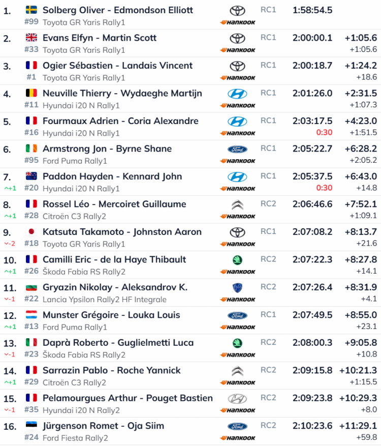 Katsevõidu teeninud Sébastien Ogier (Toyota) sai nautida veel võrdlemisi valgeid olusid, samas kui tagantpoolt startijate jaoks muutus nähtavus kiiresti halvaks. Ralli liider Oliver Solberg kaotas prantslasele 17,6 sekundit ja oli finišis nördinud: „Siin on pime, ma ei näe esimeste autodega võrreldes mitte midagi. Katse alguses ja keskel sadas hullupööra vihma,“ kirjeldas rootslane tingimusi.
