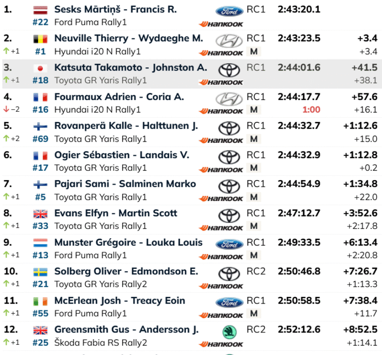 Võistluste kohtunikud määrasid senisele ralli liidrile Adrien Fourmaux‘le ühe minuti pikkuse ajakaristuse. Karistuse põhjuseks oli määruste rikkumine ajakontrollis – nimelt sisenes prantslane päeva lõpus kontrollpunkti ettenähtust minut varem.